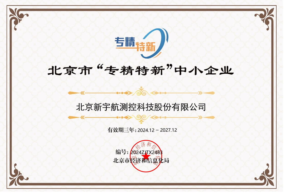 北京新宇航測控科技股份有限公司成為北京市“專精特新企業(yè)”